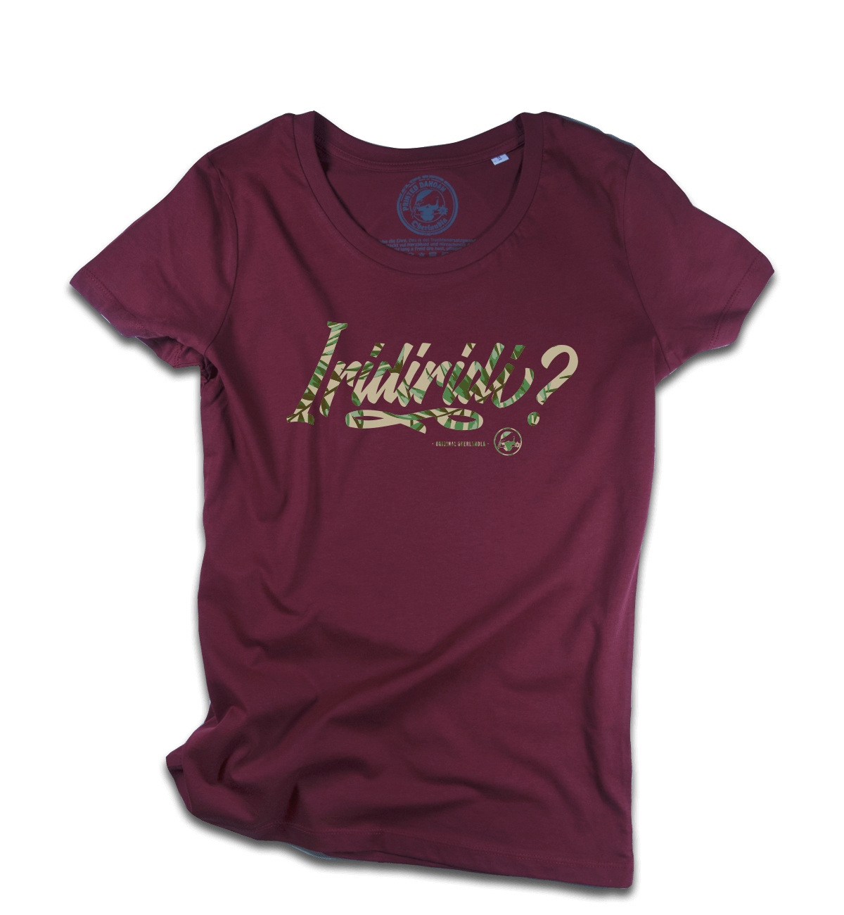 Brust-Aufdruck „printed dahoam“ im digitalen Direct-to-Garment Druckverfahren mit hautfreundlichen, wasserbasierten Druckfarben (schadstoff- und lösemittelfrei, biologisch abbaubar).