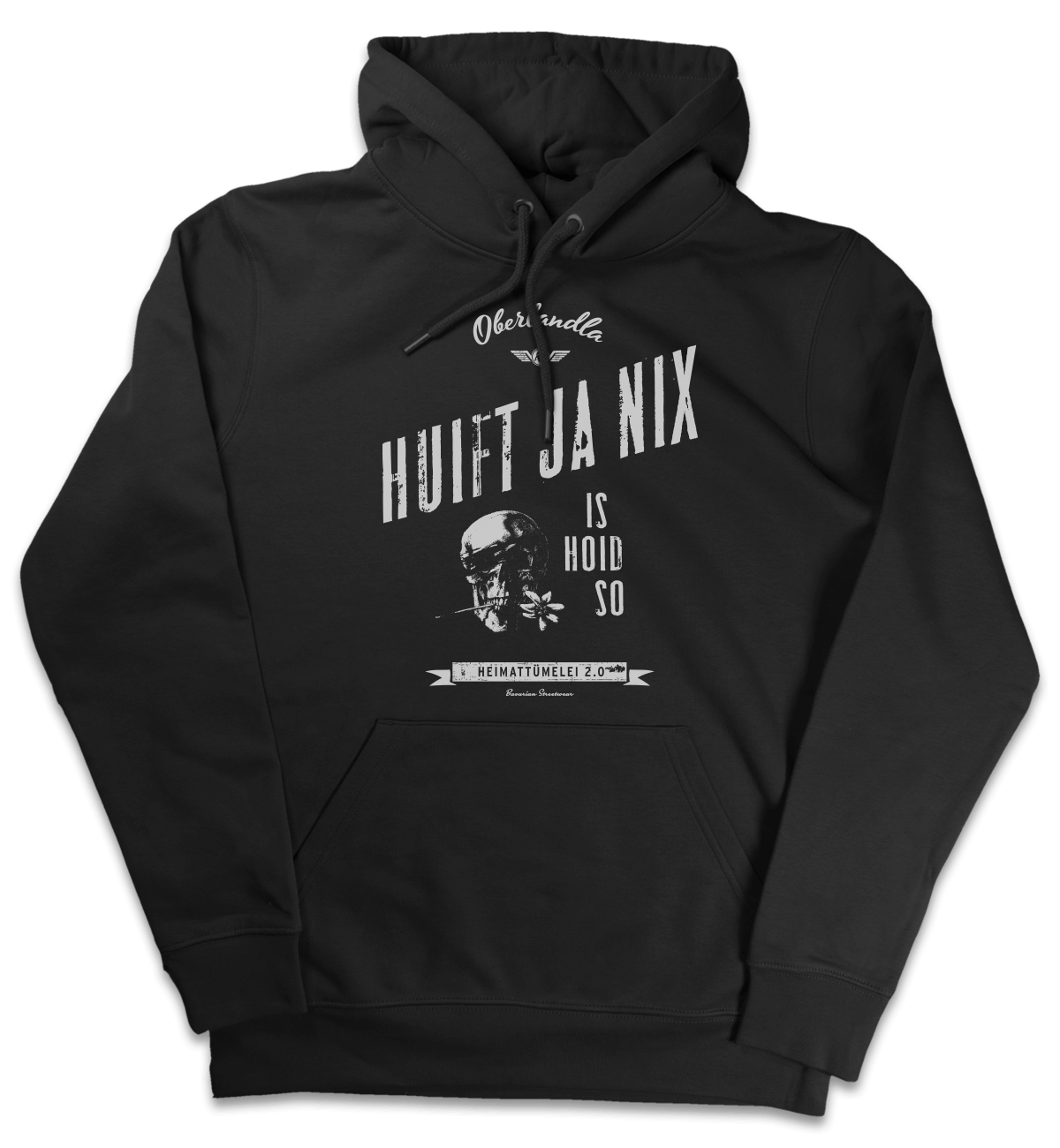 Brust-Aufdruck „printed dahoam“ im digitalen Direct-to-Garment Druckverfahren mit hautfreundlichen, wasserbasierten Druckfarben (schadstoff- und lösemittelfrei, biologisch abbaubar).