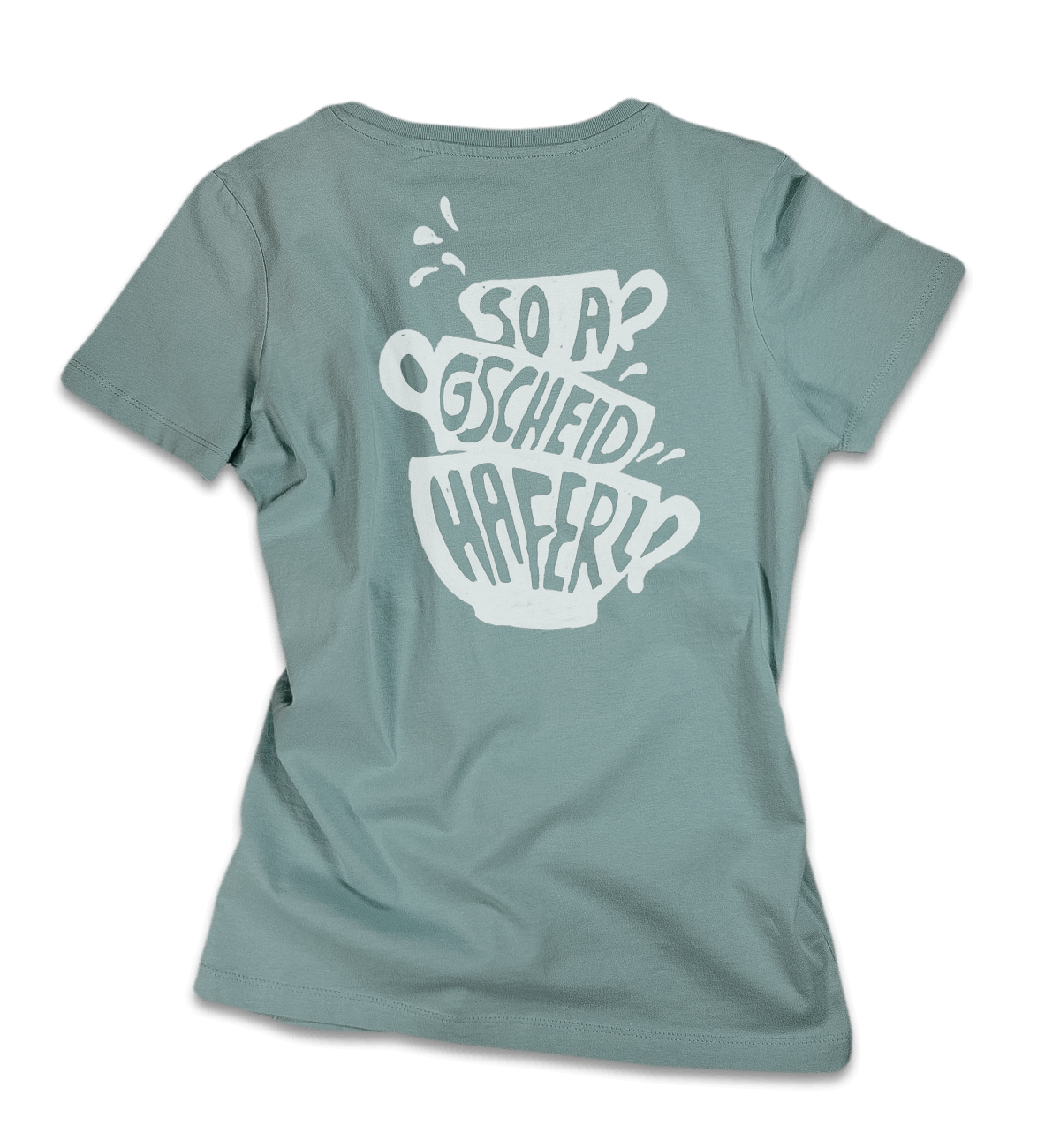 Rücken-Aufdruck „printed dahoam“ im digitalen Direct-to-Garment Druckverfahren mit hautfreundlichen, wasserbasierten Druckfarben (schadstoff- und lösemittelfrei, biologisch abbaubar).