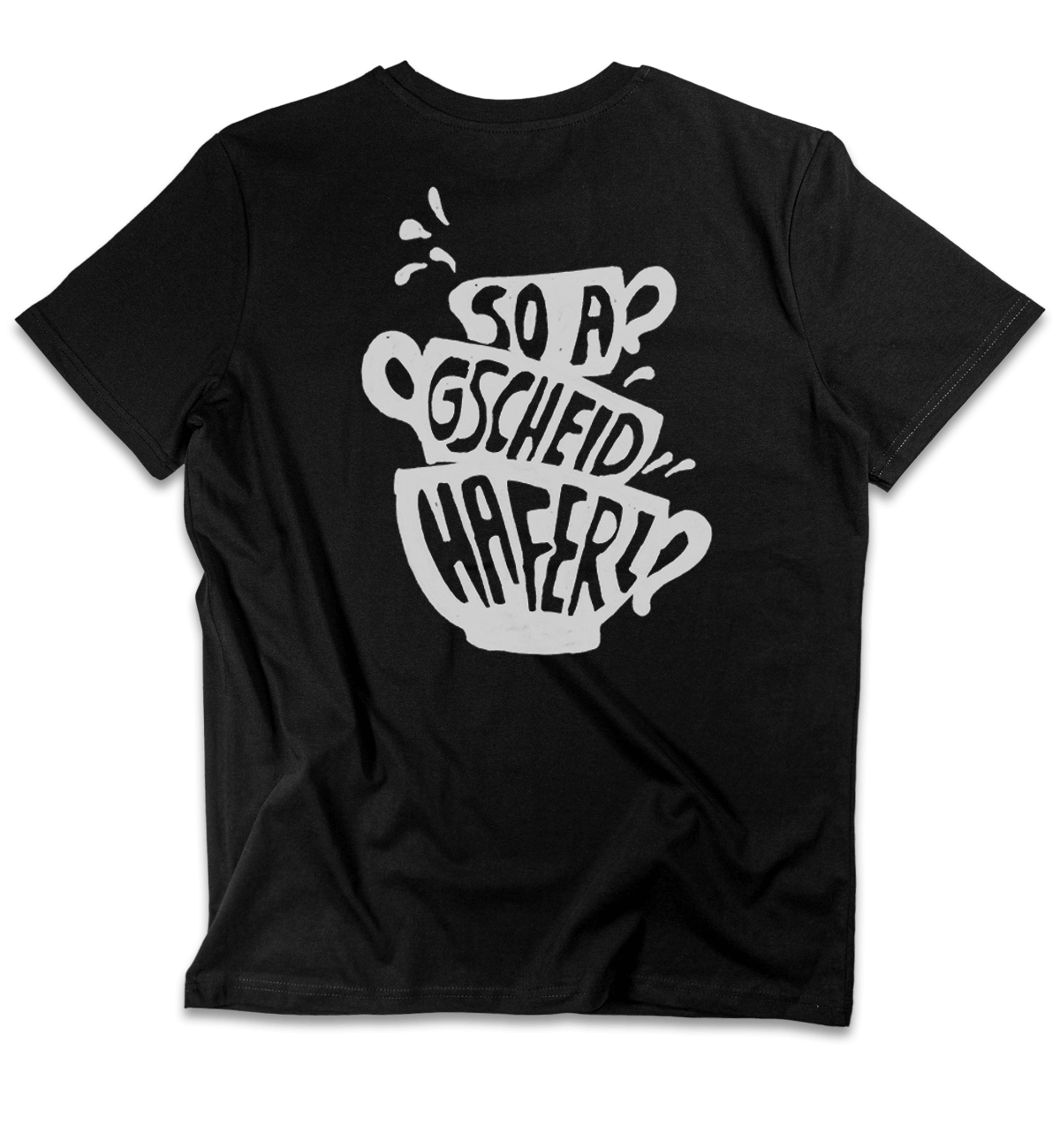 Rücken-Aufdruck „printed dahoam“ im digitalen Direct-to-Garment Druckverfahren mit hautfreundlichen, wasserbasierten Druckfarben (schadstoff- und lösemittelfrei, biologisch abbaubar).